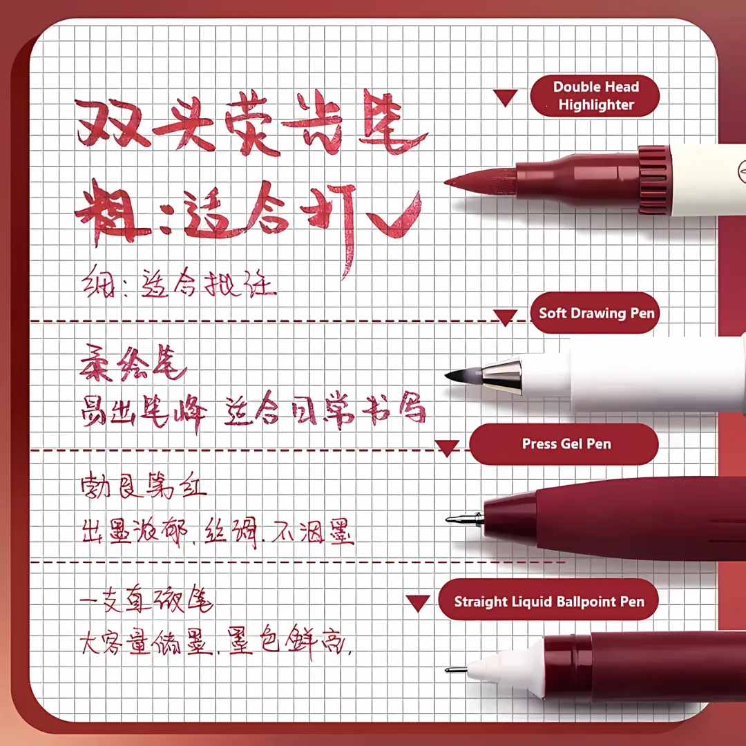 4 Pcs Colour Multifunctional Quick-Drying Pens And Highlighter Set