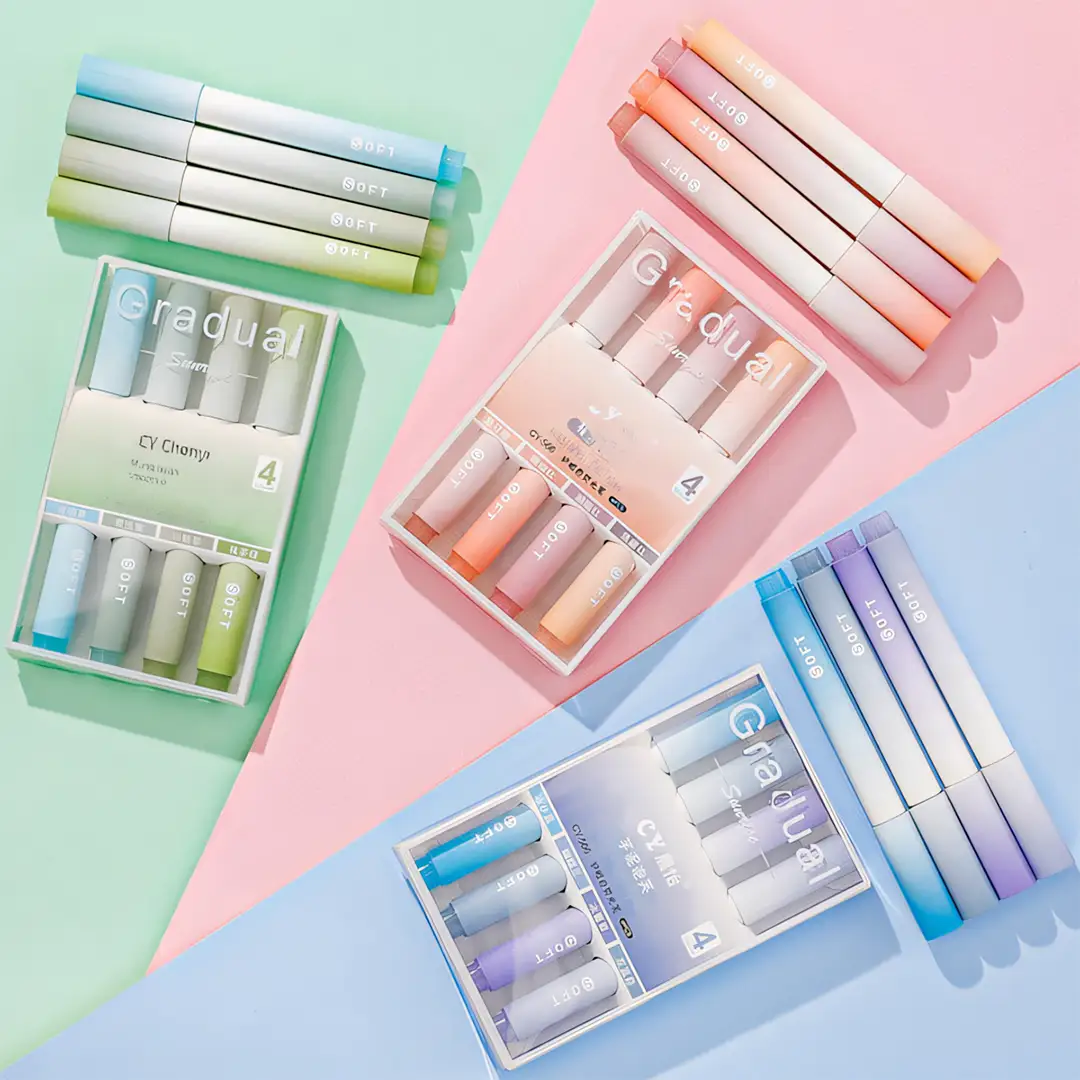 4pcs/set Colour Gradient Highlighter Set Kawaii Stationery Students Marker Pen Office Supplies