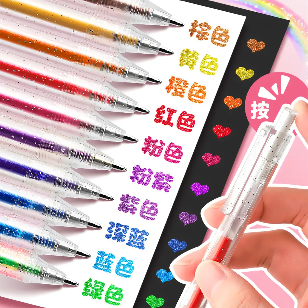 12 Colours Retractable and Uncap Type Glitter Gel Pens For Writing Art Marker Colouring Drawing