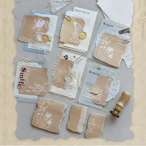 Add Instant “Age” & Character to Your Pages.Create stunning, multi-layered spreads with this 30pcs Vintage “Tear-Off” Edge Material Paper Set. Designed specifically for Junk Journals and Scrapbooking, these papers feature a unique “imprint” design that mimics the look of burnt edges, torn receipts, and antique documents.Unlike standard sticky notes, these are semi-adhesive material papers meant for collage work. They are perfect for adding texture and a nostalgic vibe to your diary without adding too much bulk.
