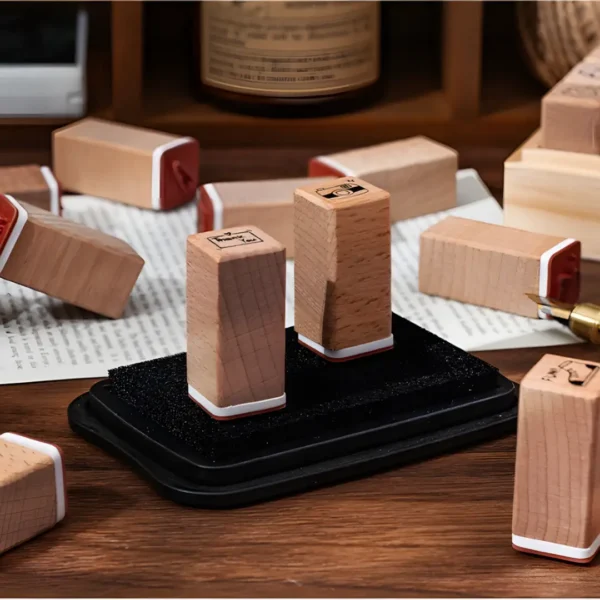 Daily Plan Schedule Rubber Seals Cute Stationery in Wooden Box