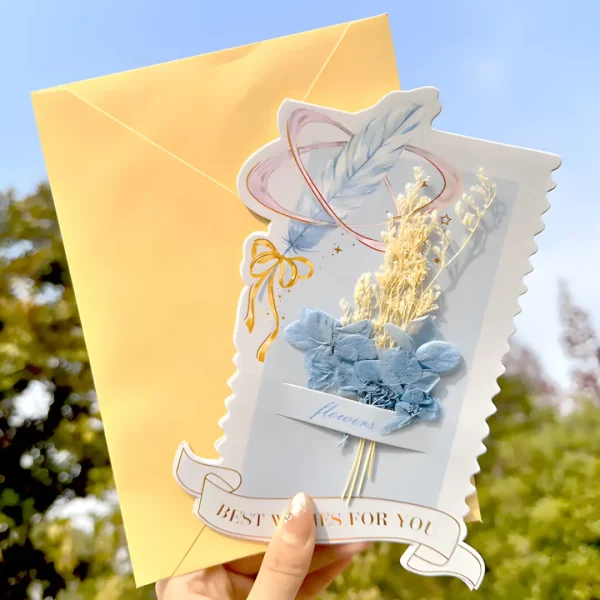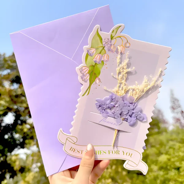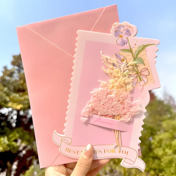 Unlike standard flat cards, this premium card features a beautiful, Dried Flowers attached to the front, giving it an vintage, handcrafted look. Whether you are expressing love to a partner, gratitude to a mother, or best wishes to a friend, the minimalist design speaks volumes.