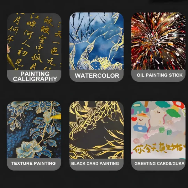 • Creates a stunning, eye-catching effect on both light and dark surfaces, especially black paper.
